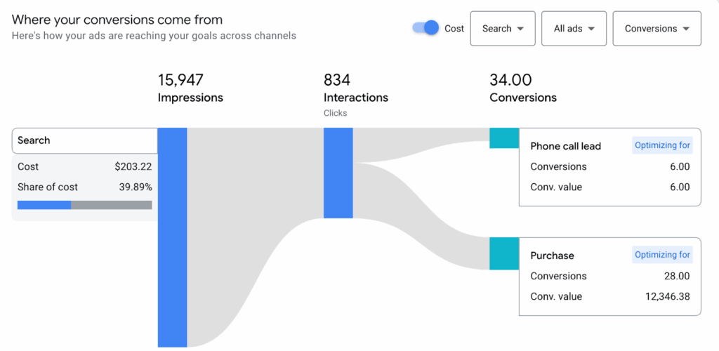 How a Performance Max campaign is organized matters too. Throwing every product or audience into a single “catch-all” campaign might seem easier, but it makes optimization nearly impossible. Segmenting by product category, funnel stage, or audience group creates more relevant creative pairings and allows you to see what’s actually driving results. The insights you gain from this structure can inform not only your PMax strategy but your broader media mix as well.